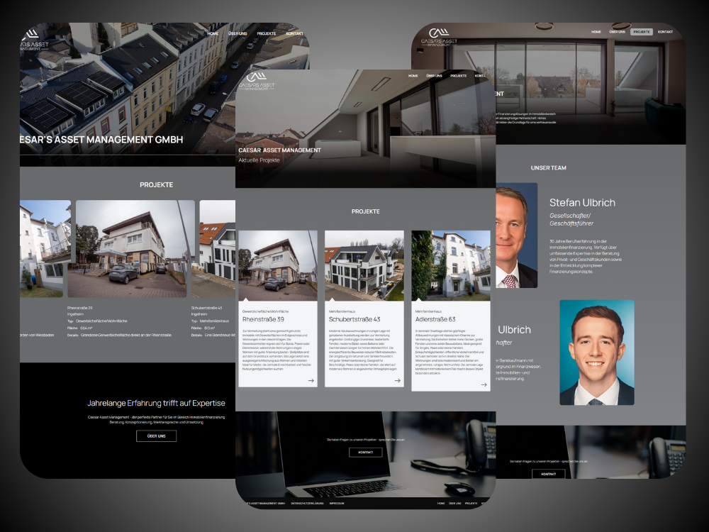 Caesar’s Asset Management benötigte eine moderne Online-Präsenz, die Professionalität, Vertrauen und Transparenz vermittelt. Die bisherige Website war technisch veraltet, optisch unruhig und bot keine klare Struktur zur Präsentation der Immobilienprojekte. Ziel war es, eine digitale Plattform zu schaffen, die die Markenidentität stärkt und gleichzeitig ein hochwertiges Benutzererlebnis bietet.